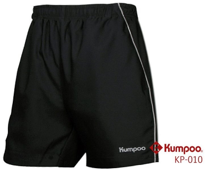 Bardzo wygodne i nie krępujące ruchów, czarne, męskie spodenki treningowe, znanej i cenionej wśród profesjonalnych graczy badmintona firmy Kumpoo.